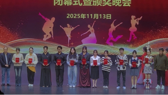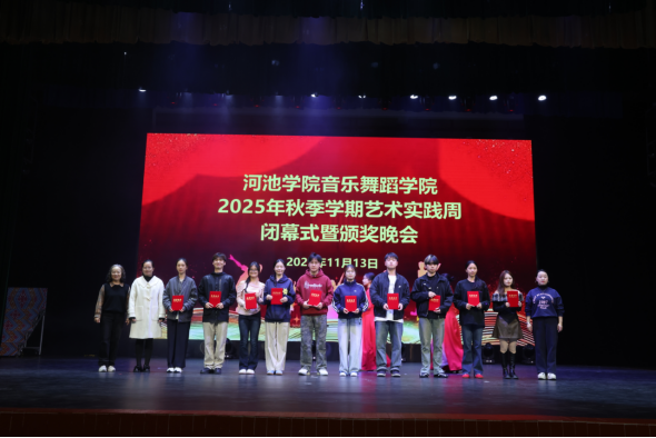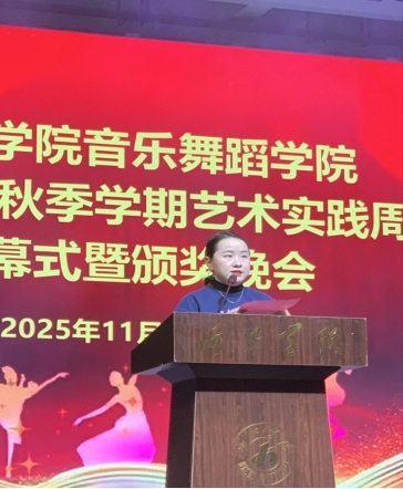 11月13日晚,音乐舞蹈学院2025年秋季学期艺术实践周闭幕式暨颁奖晚会在艺术楼表演厅举行。学院领导班子及全体在校师生出席了此次活动。