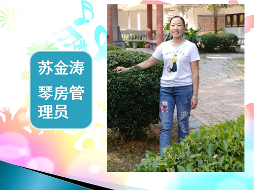 苏金涛,女,瑶族,中专毕业,琴房管理员。